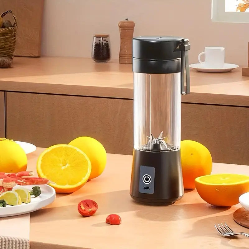 Licuadora portátil: motor potente, cuchillas de acero inoxidable, recargable por USB, fácil de limpiar.